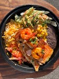 Peppers, onion, corn, tomato, avocado. yellow cheese