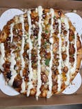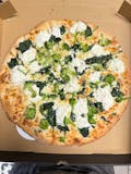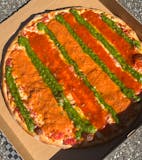Our Cheese Pizza Topped with our delicious Marinara, Pesto and our Amazing Vodka Sauce.