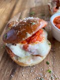 Must try! 5 pieces of our delicious garlic knots stuffed with home-made 3 oz. meatballs with grande Provolone cheese and topped with Parmigiano Reggiano. Our delicious home-made garlic knots.