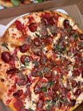 Pepperoni, Italian Sausage Fresh Mozzarella, Fresh Jalapeño, Hot Honey, Fresh Basil