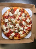 #1 seller! Pepperoni, Italian Sausage,Fresh mozzarella Topped Mikes Hot Honey