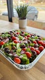 House Greek salad over an amazing crispy crust with our homemade house dressing.